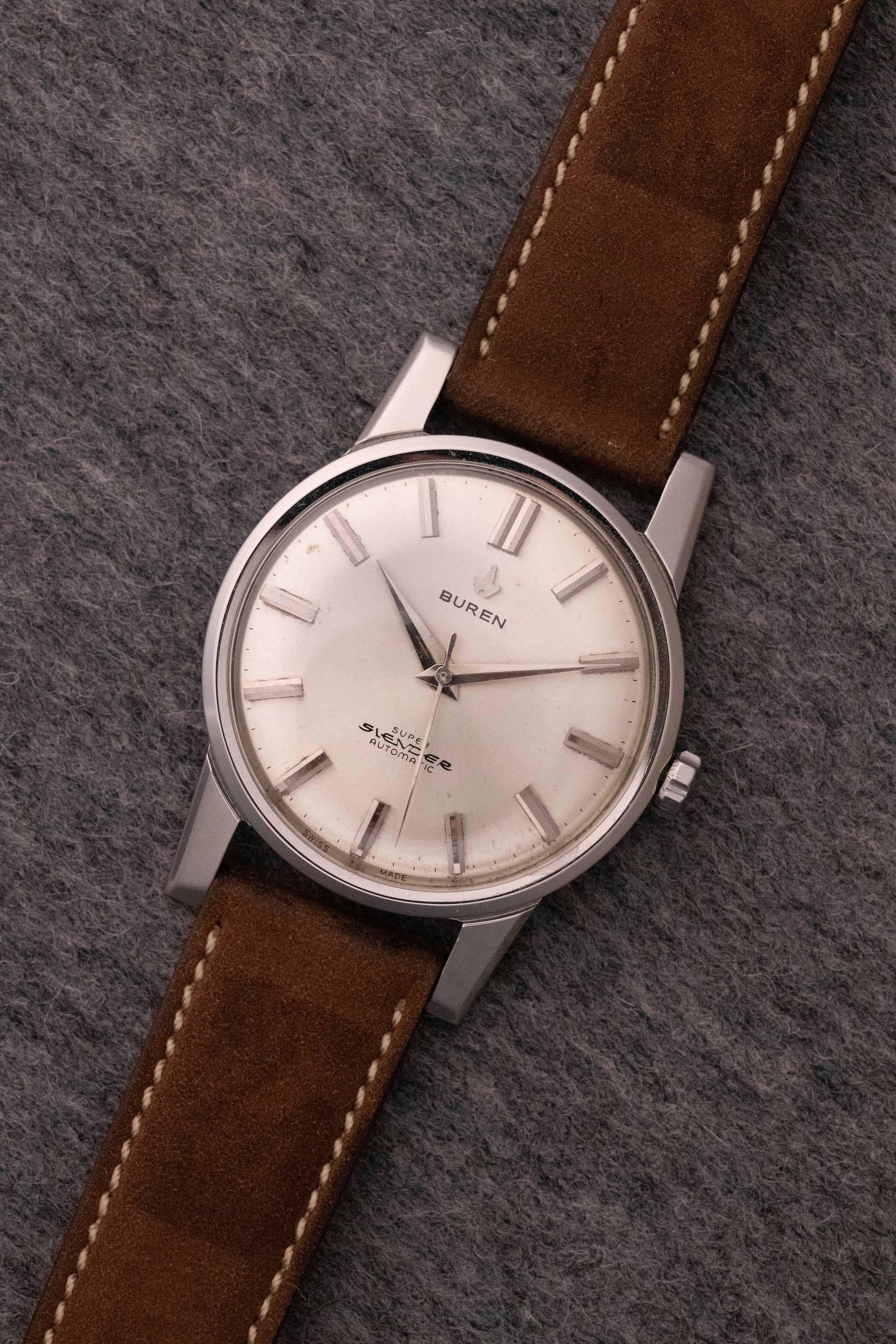 Cadran champagne soleillé, index bâton appliqués, aiguilles dagues acier