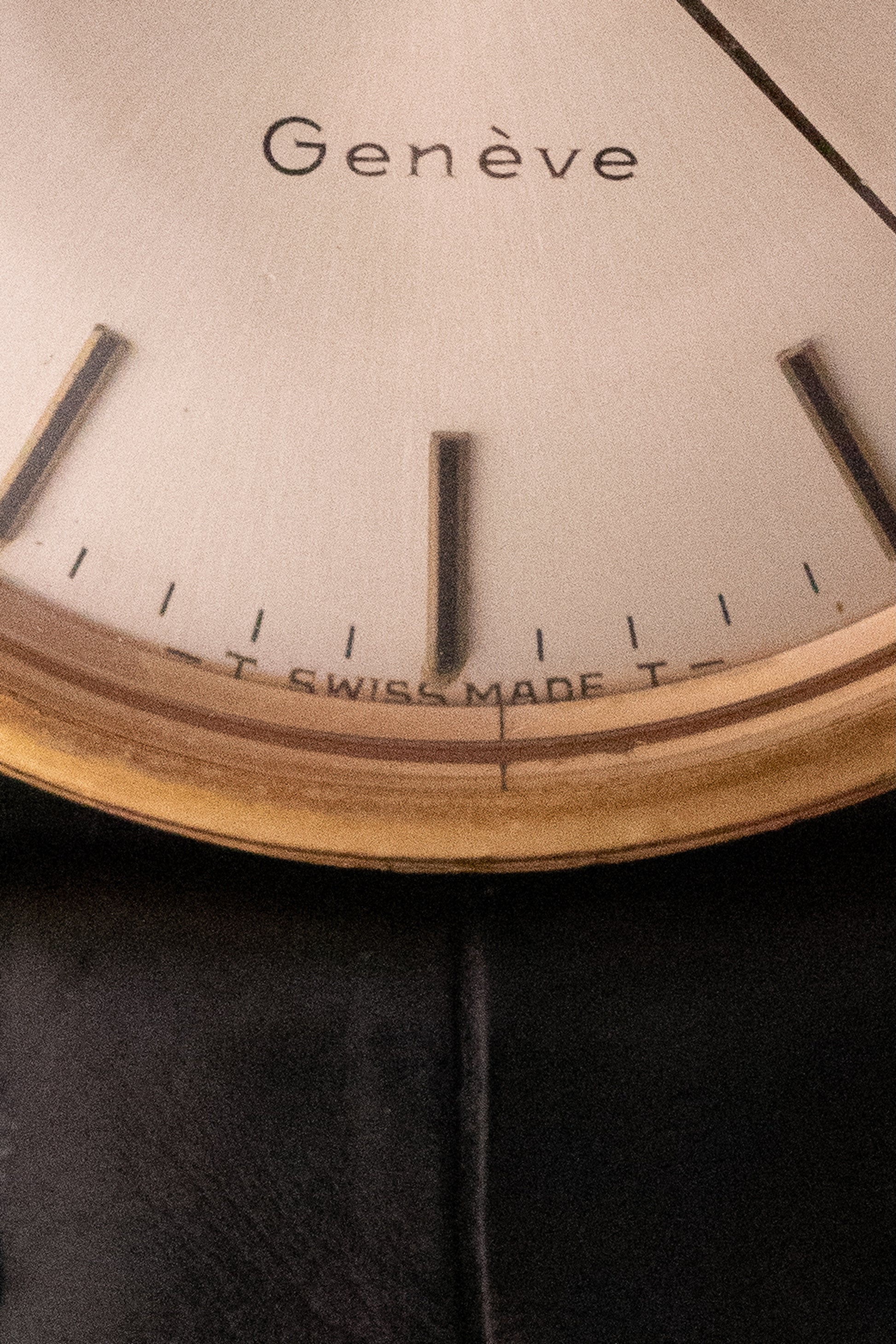 Boitier plaqué or 34mm, couronne siglée, fond vissé, plexi siglé d'origine