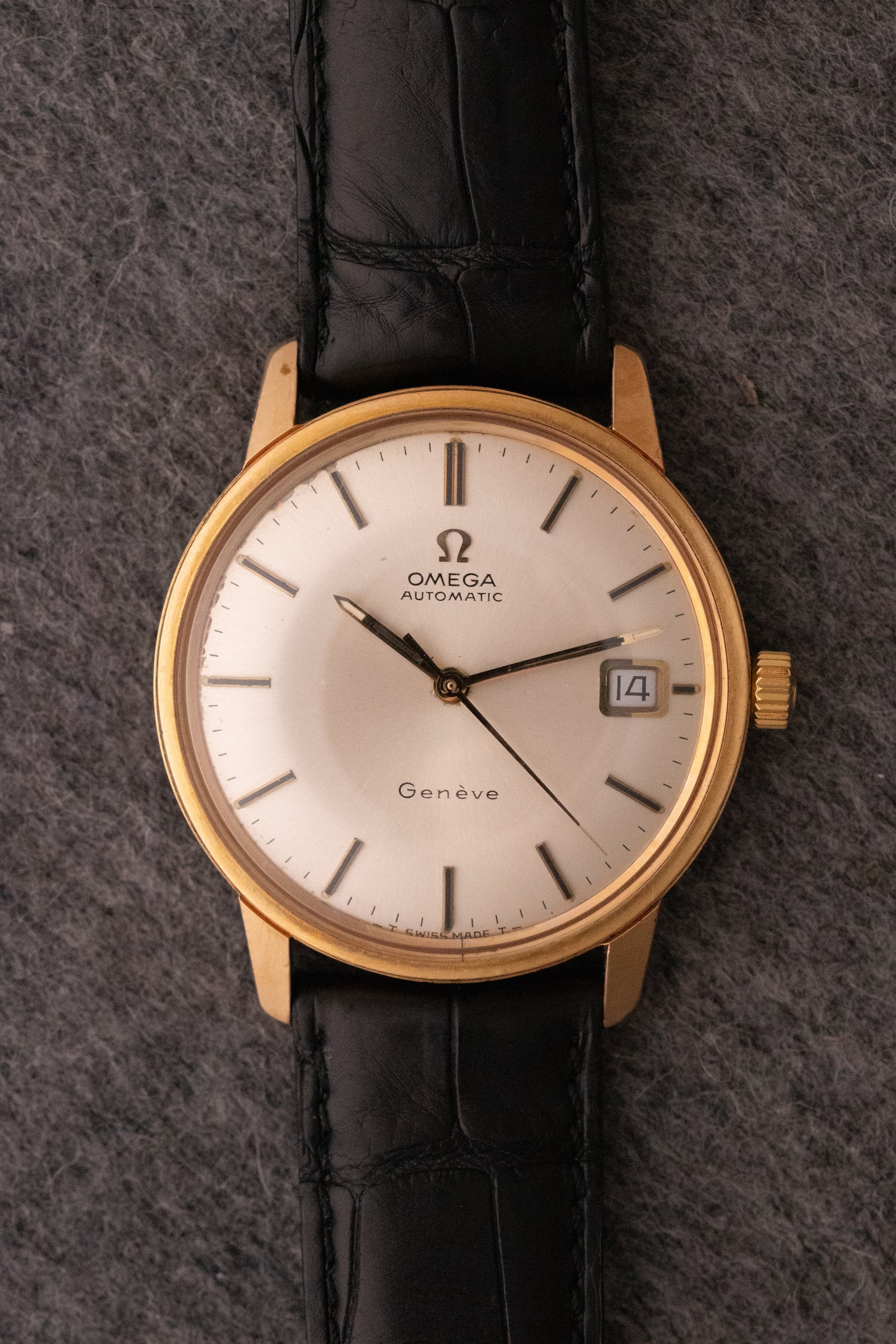 Cadran crème soleillé, aiguilles or tritium, index bâtons appliqués plots tritium, date ,par guichet à 3H, trotteuse centrale