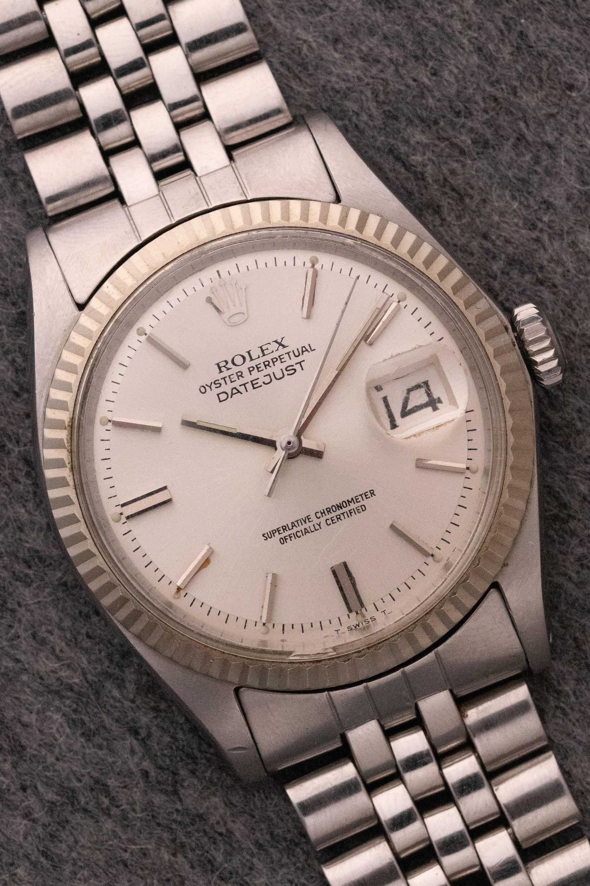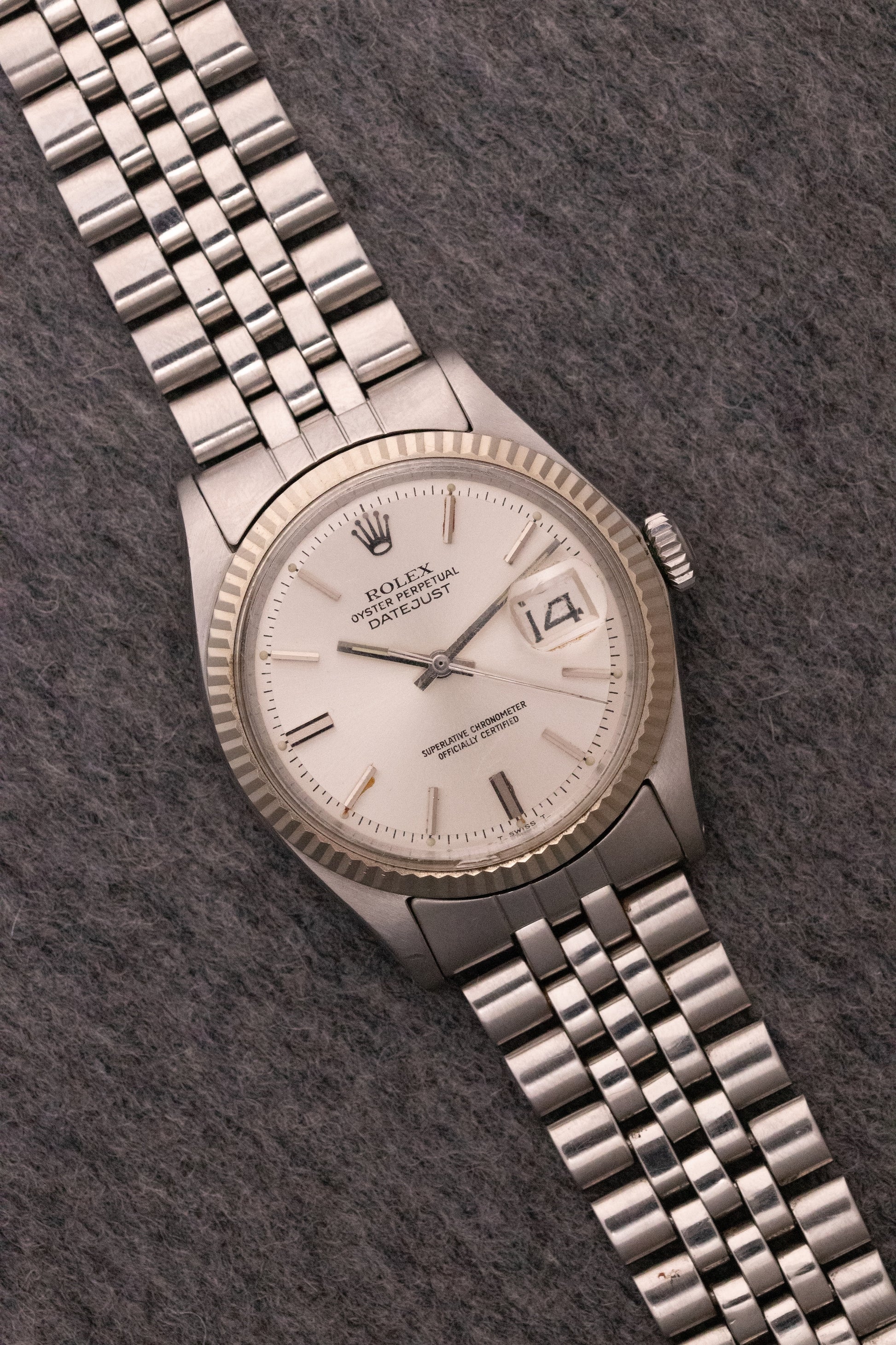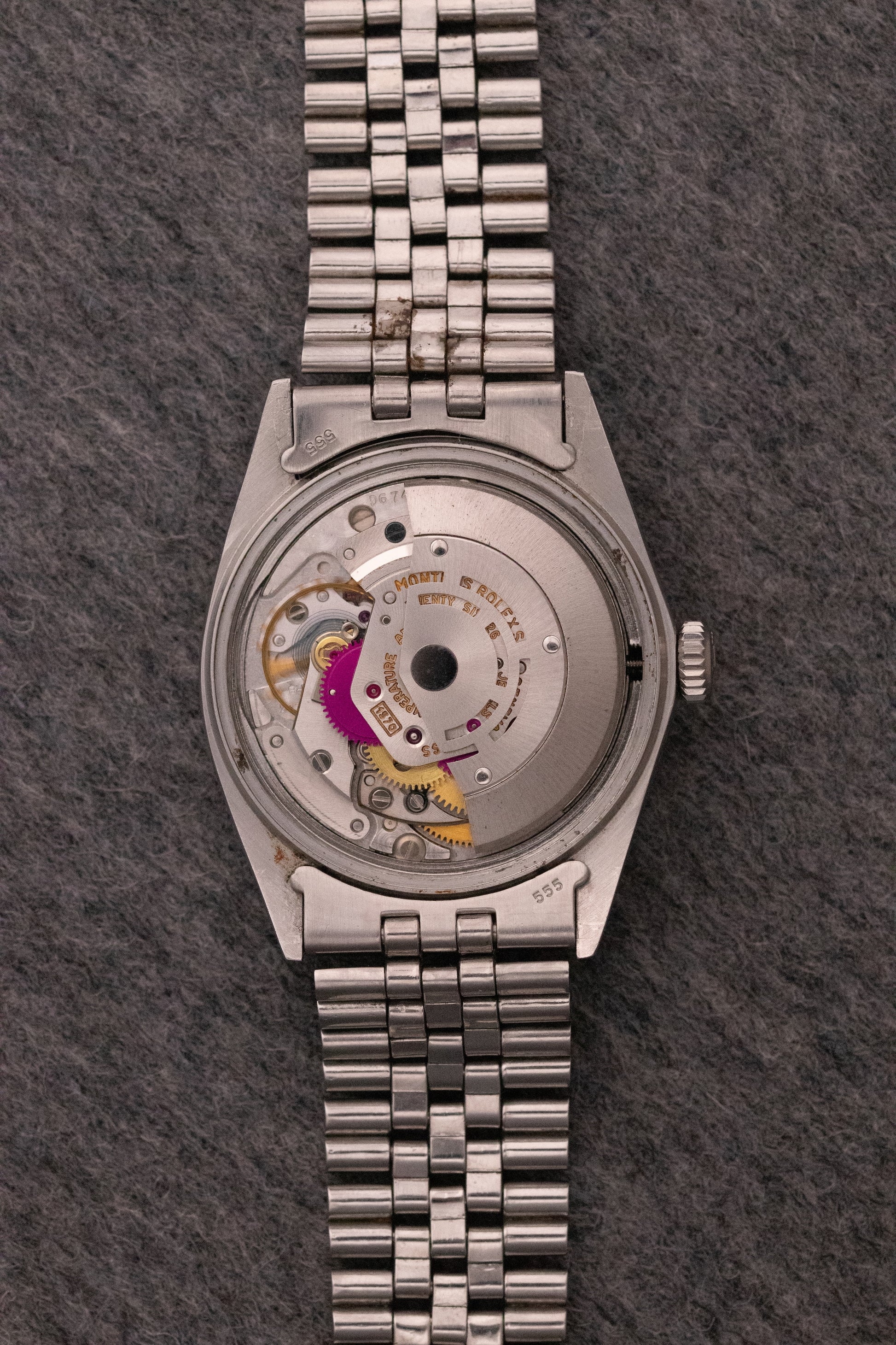 Boitier oyster en acier poli 36mm, lunette en or blanc