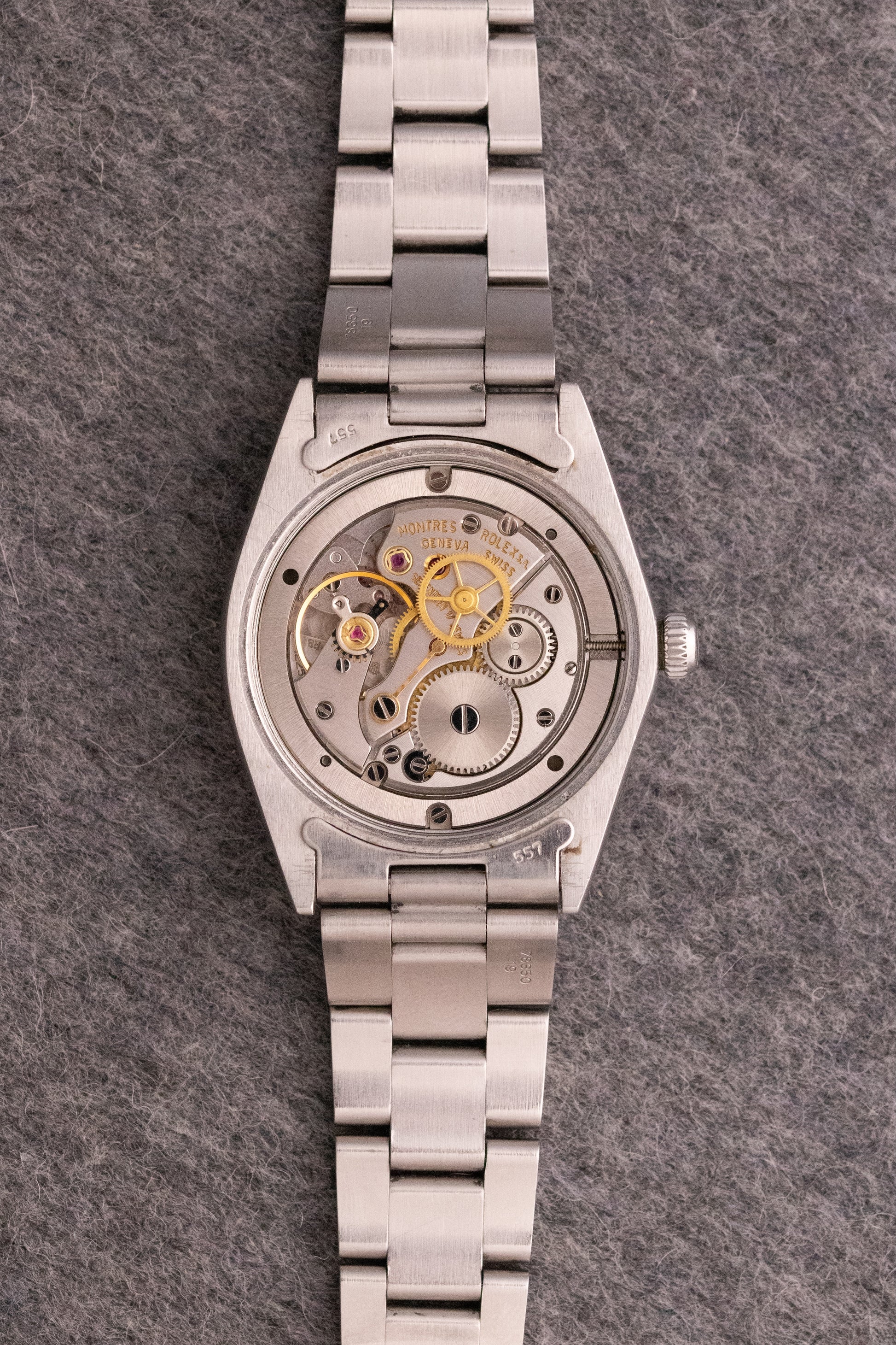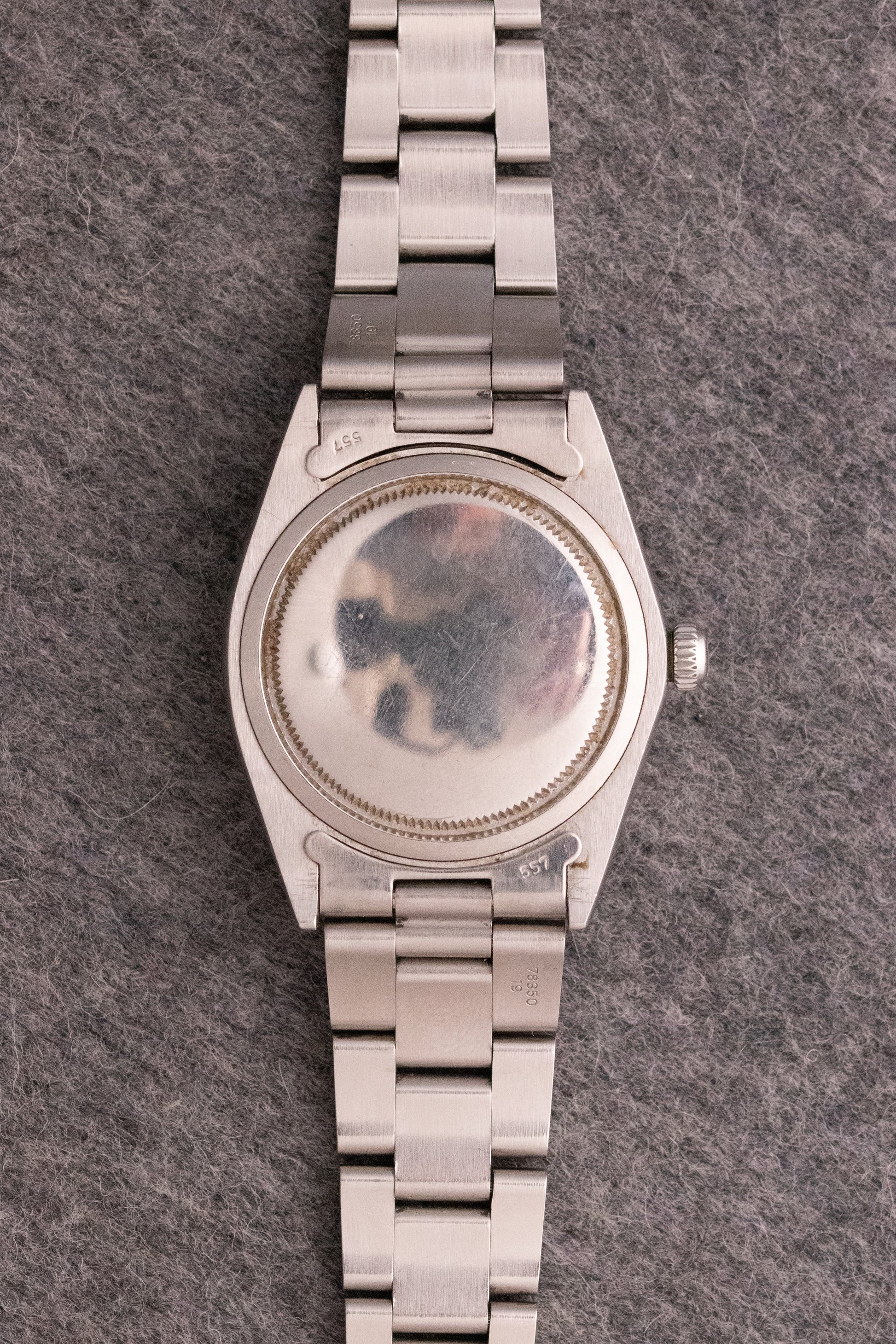Boitier oyster 34mm acier poli et brossé, lunette lisse acier, couronne vissée, fond vissé, verre plexi cyclope
