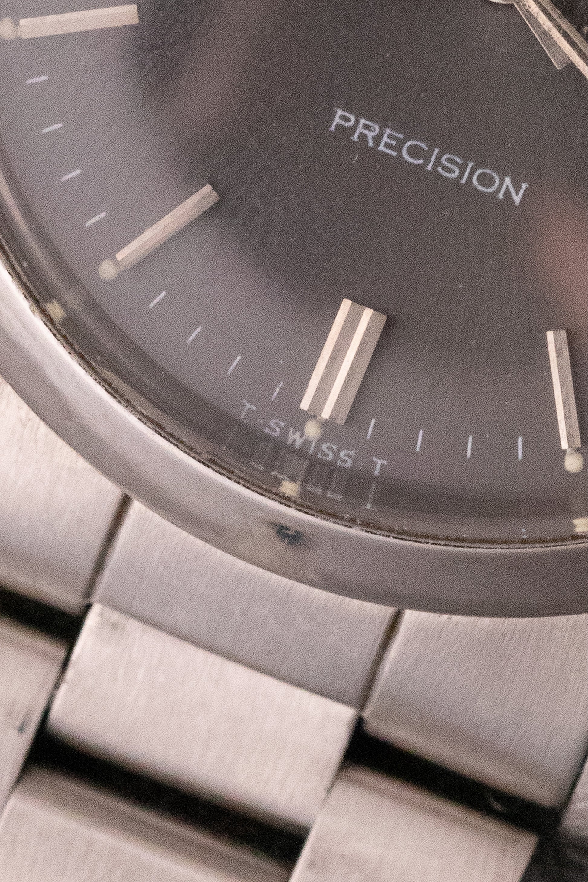 Cadran gris soleillé, index bâtons appliqués, plots tritium, aiguilles tritium