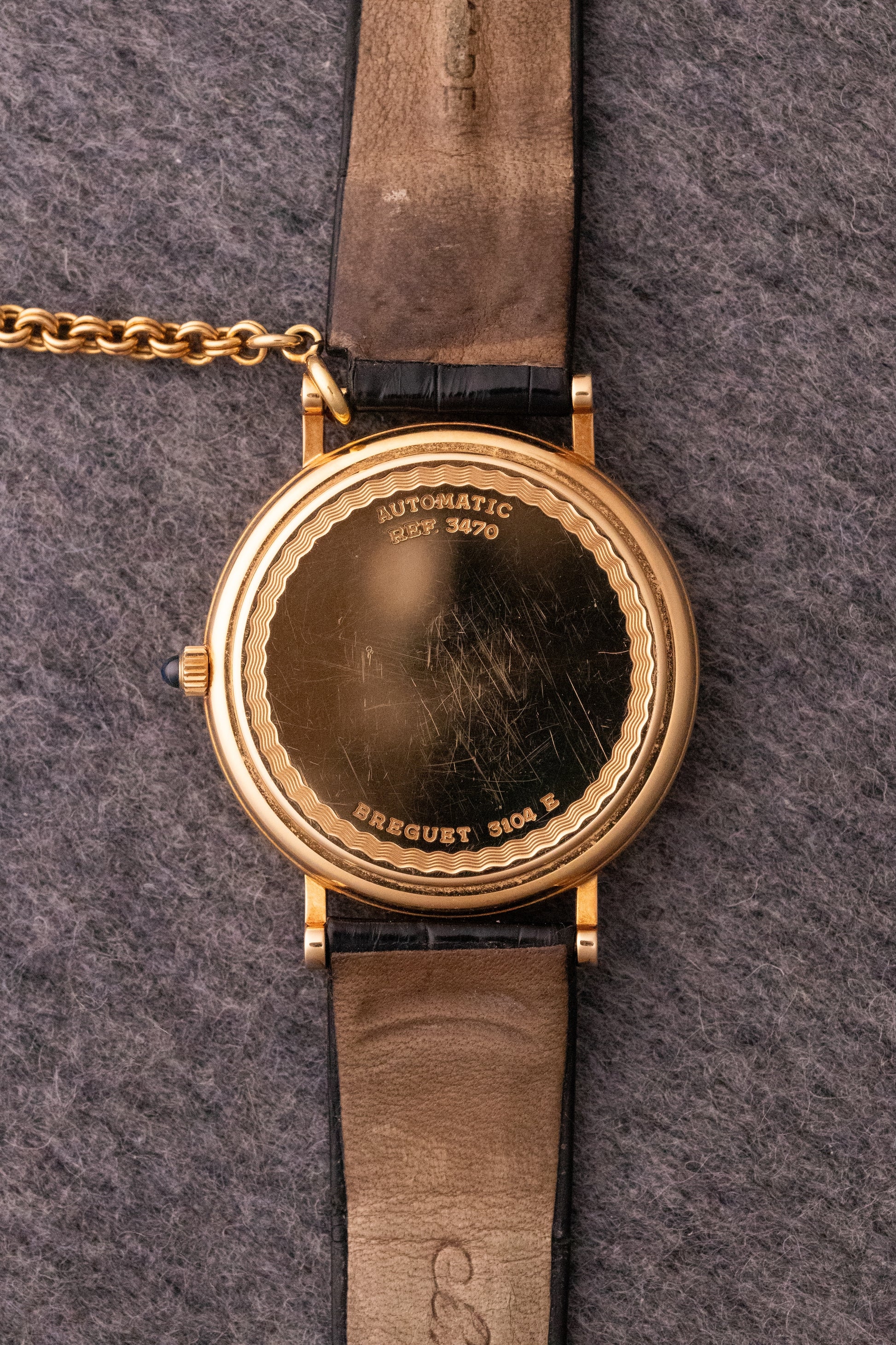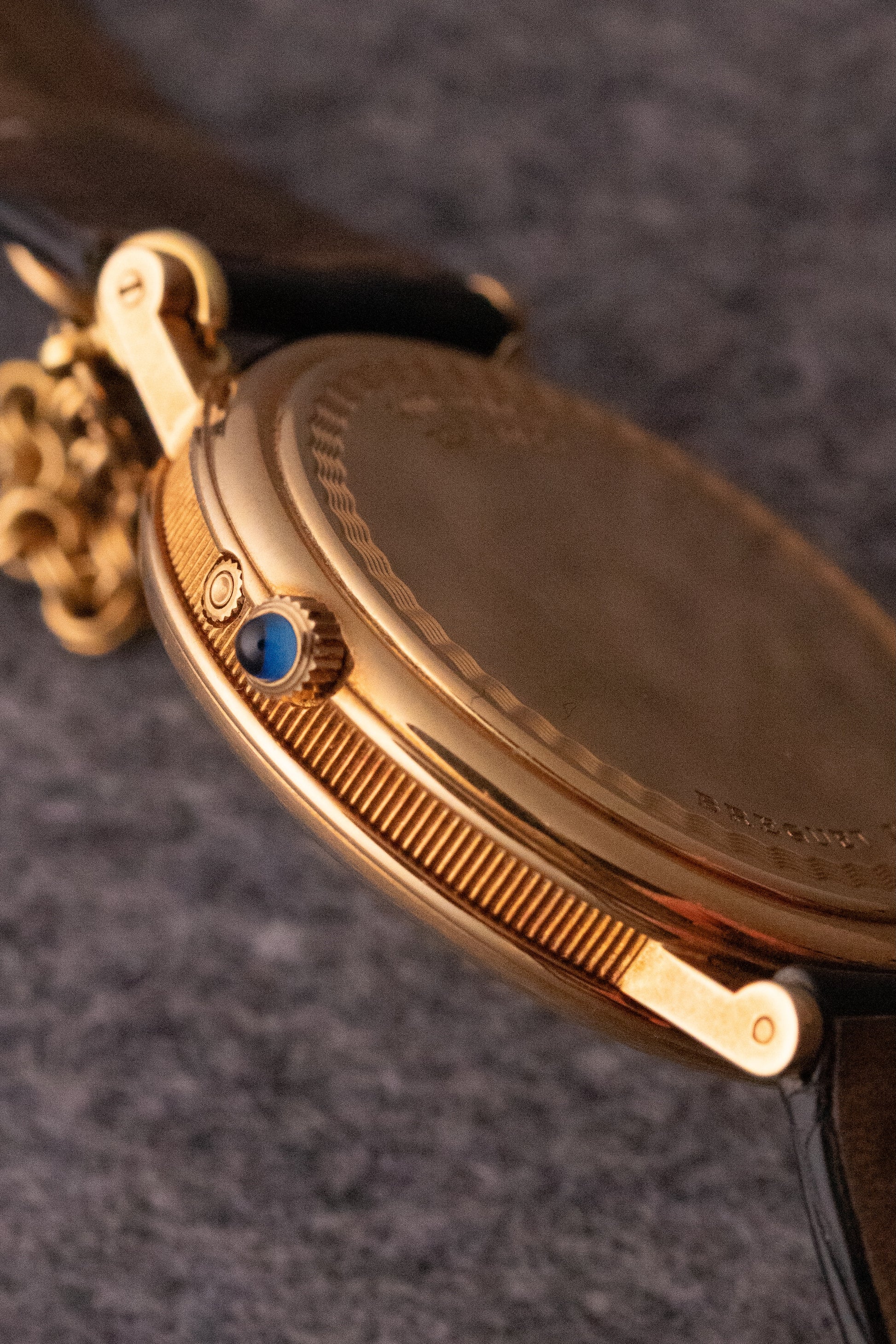 Bracelet d'origine en aligator, boucle Breguet en or jaune, chainette et pin de réglage