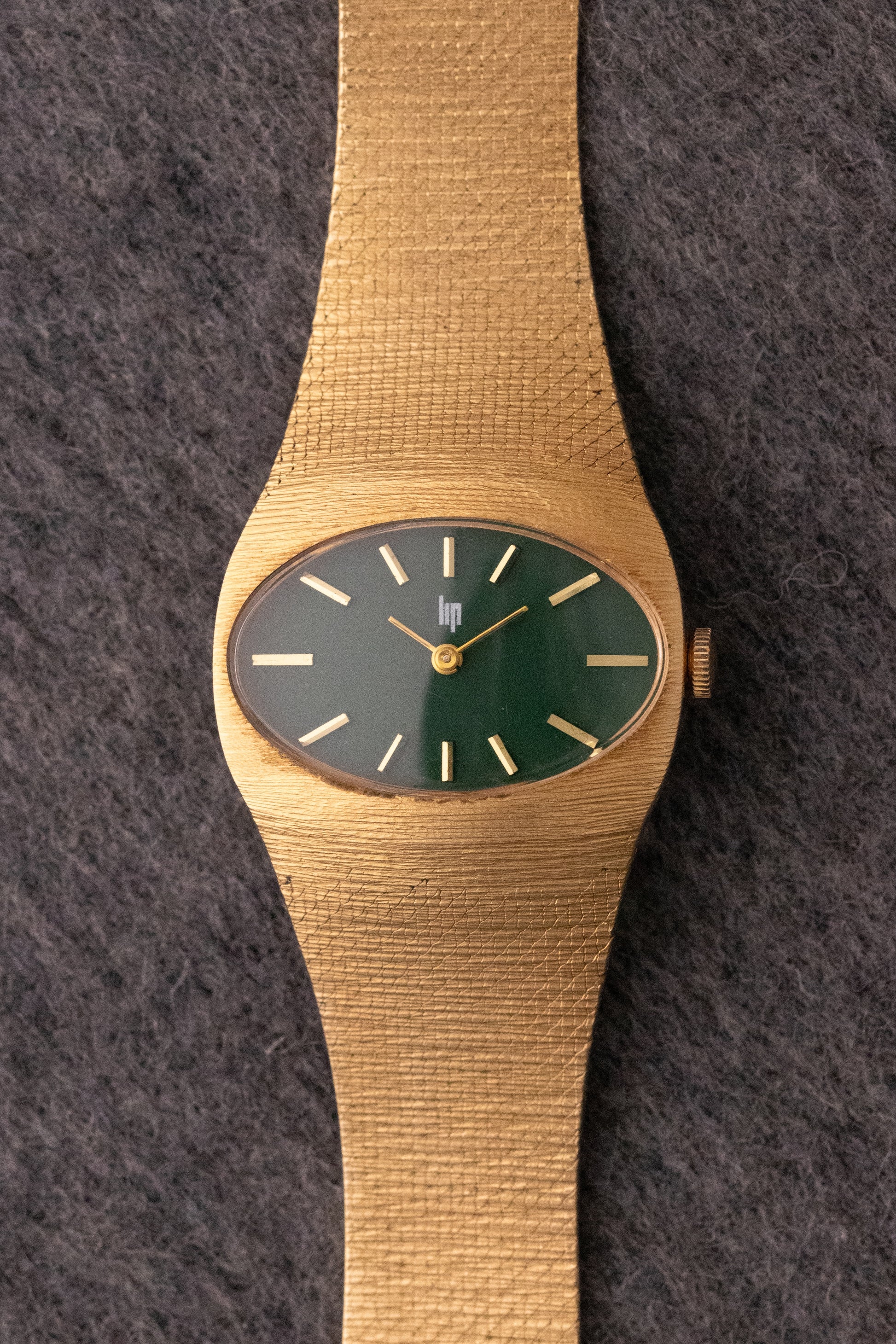 Boitier plaqué or 30mm, bracelet intégré jusqu'à 16cm