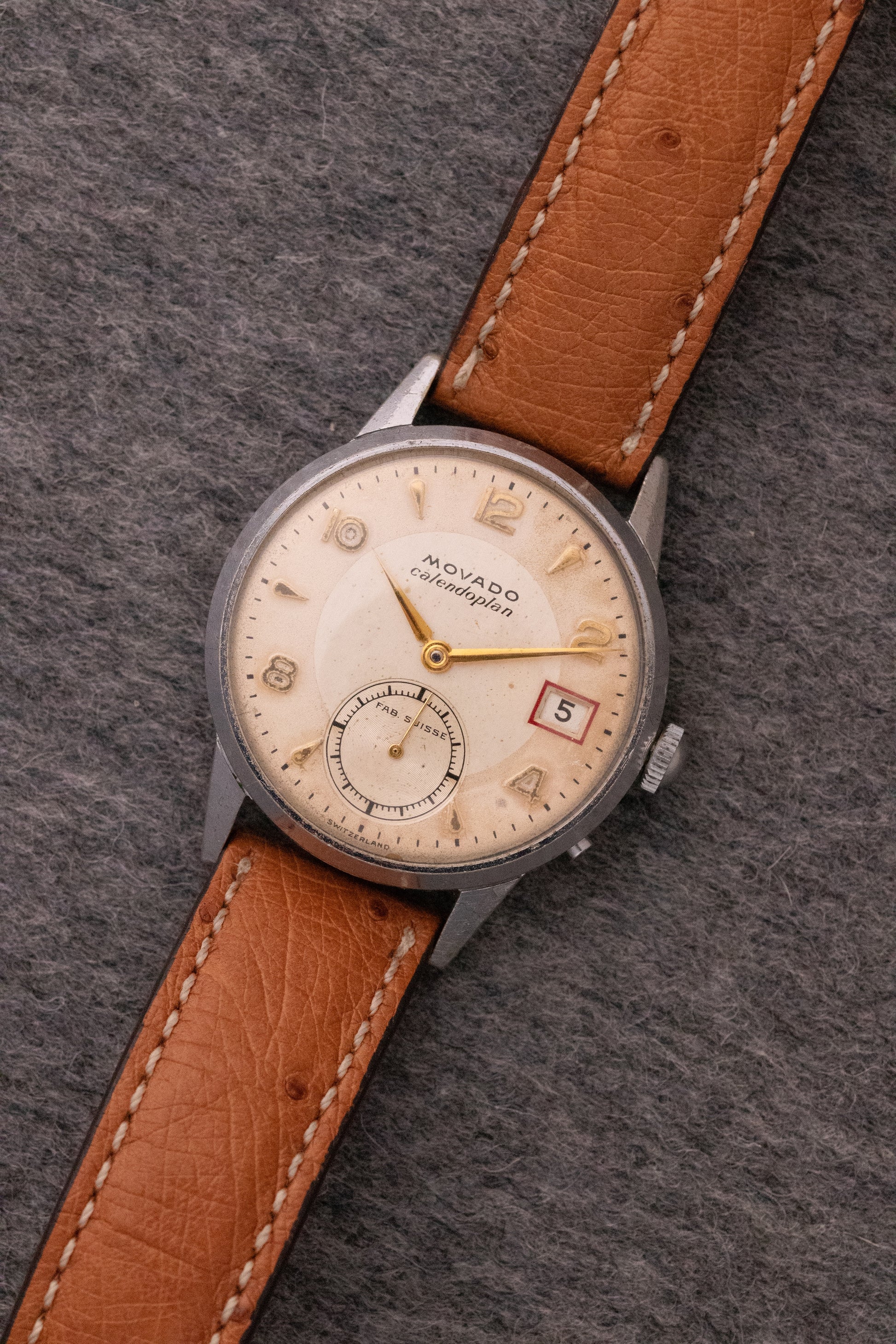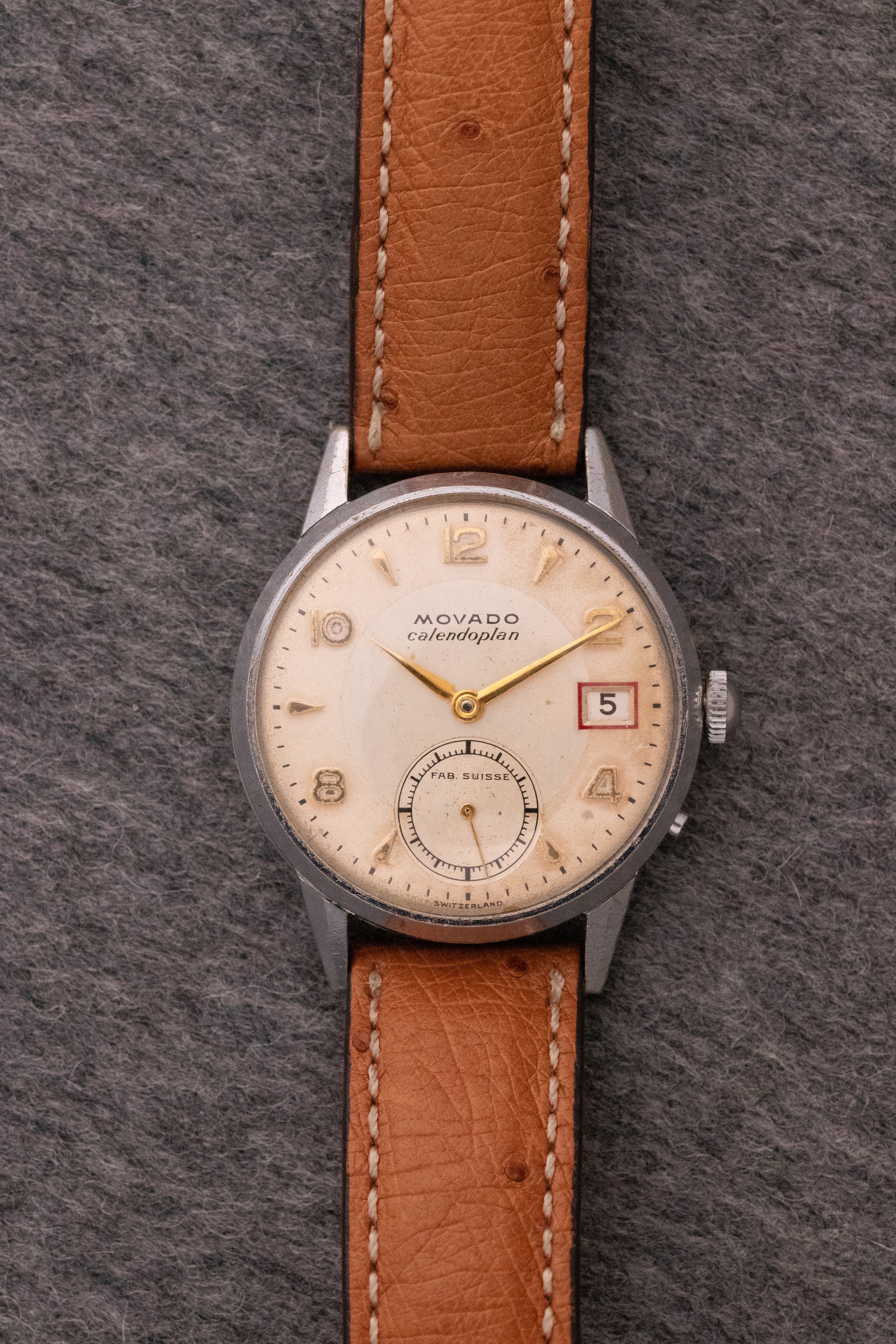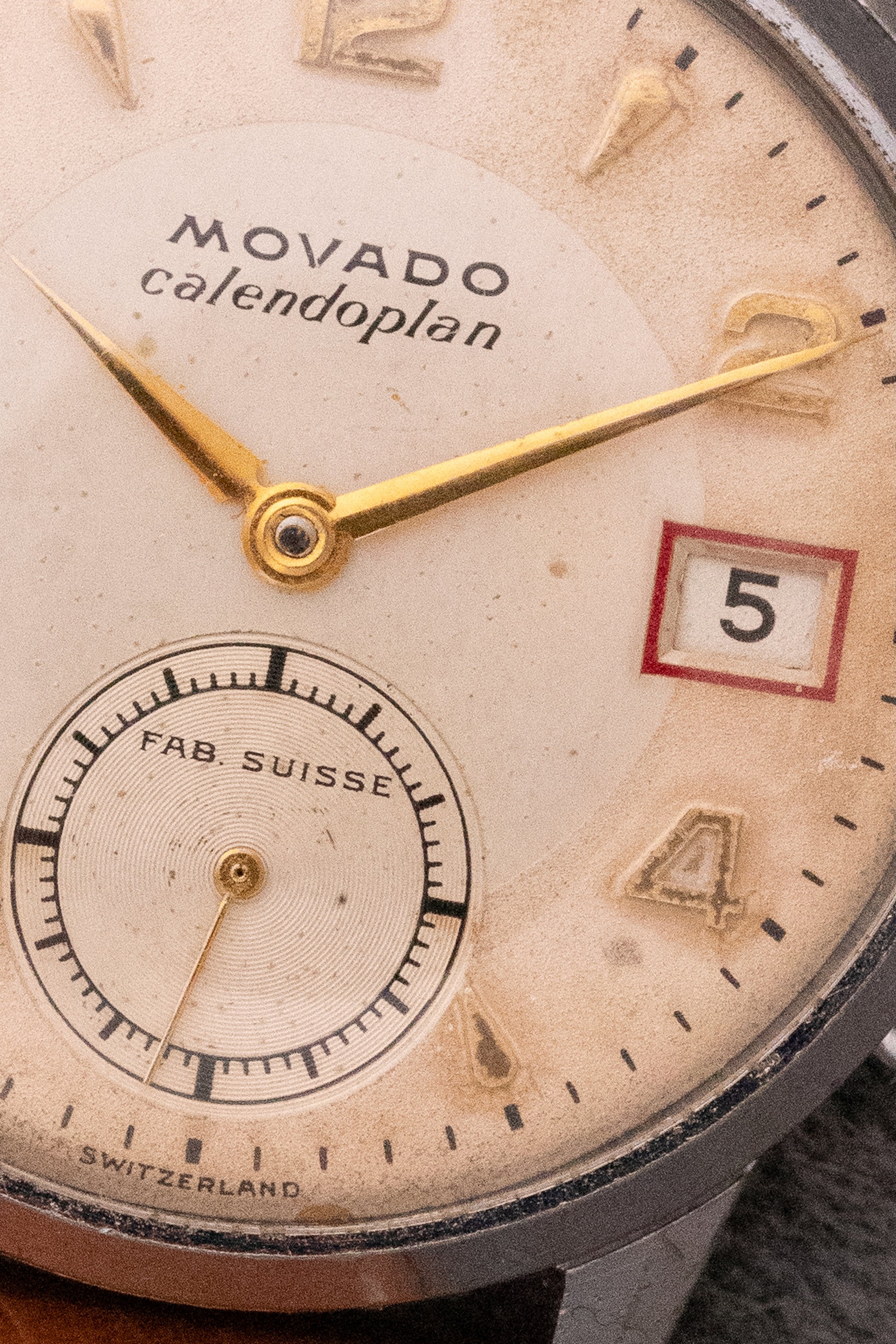 Cadran champagne foncé mat et satiné, index appliqués dorées, date par guichet à 3H, aiguilles glaives dorées, petite seconde à 6H