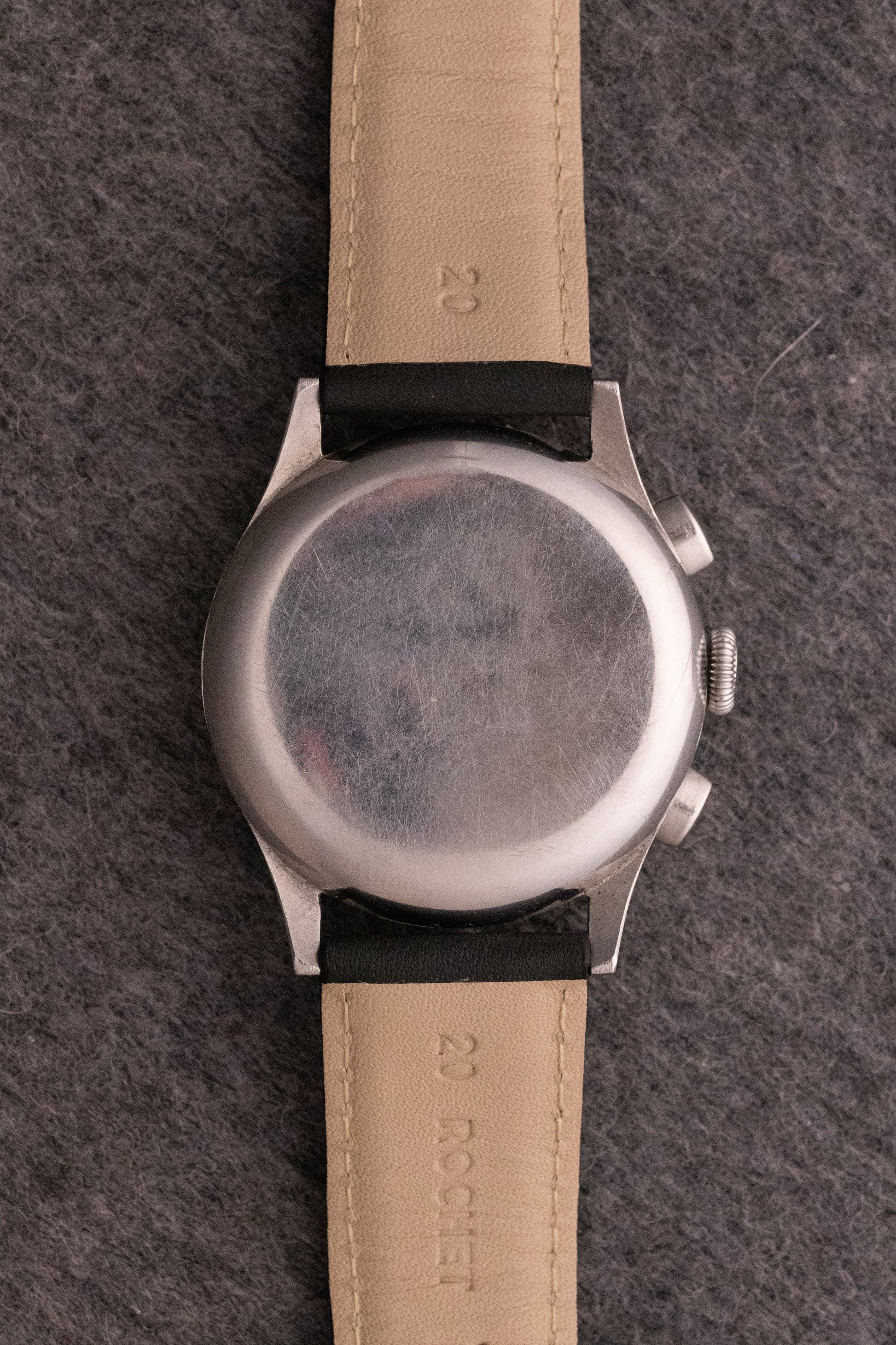 Boitier acier 38mm, poussoirs olives, fond clipsé