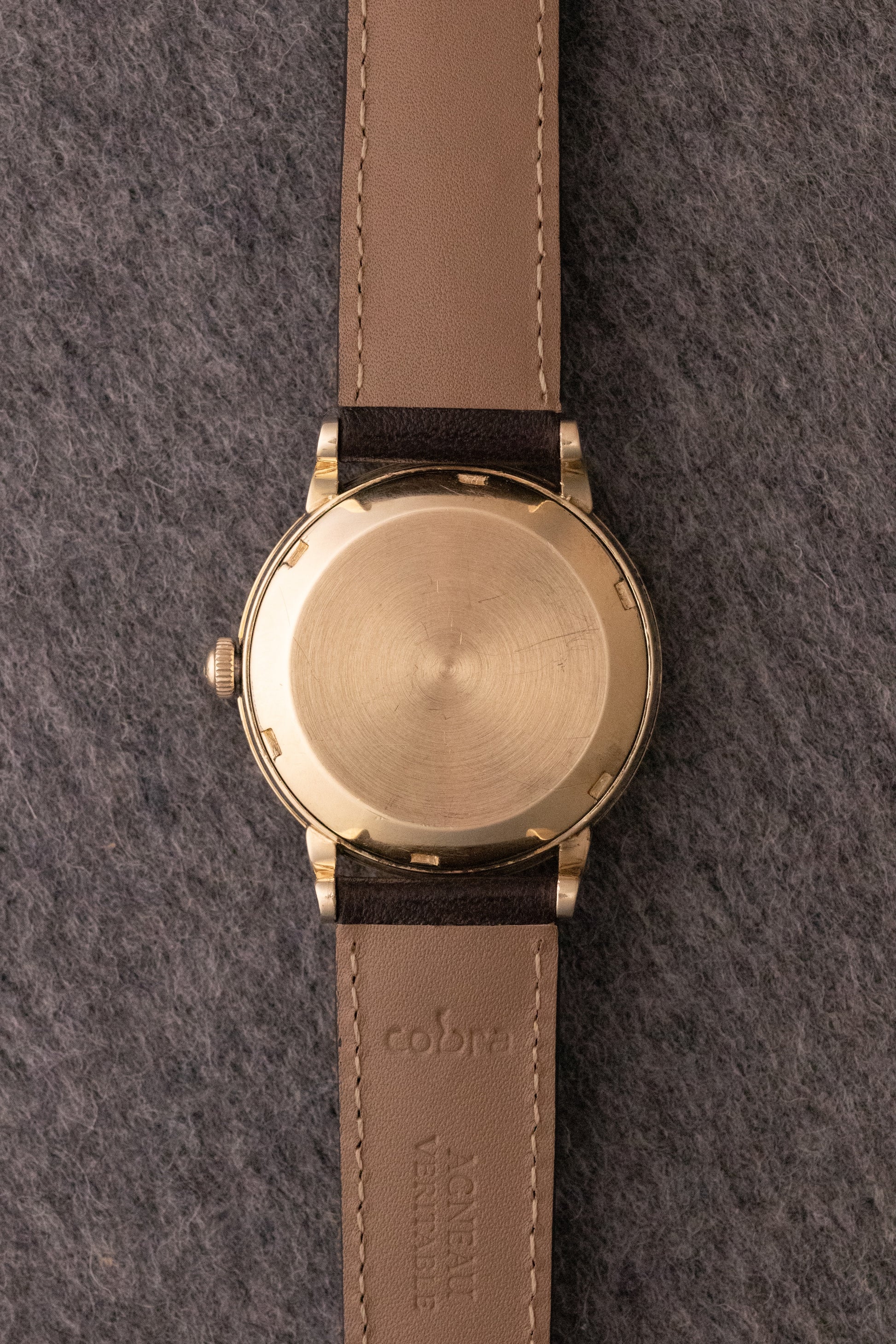 Boitier or 14k 34mm, fond vissé, couronne d'origine siglée