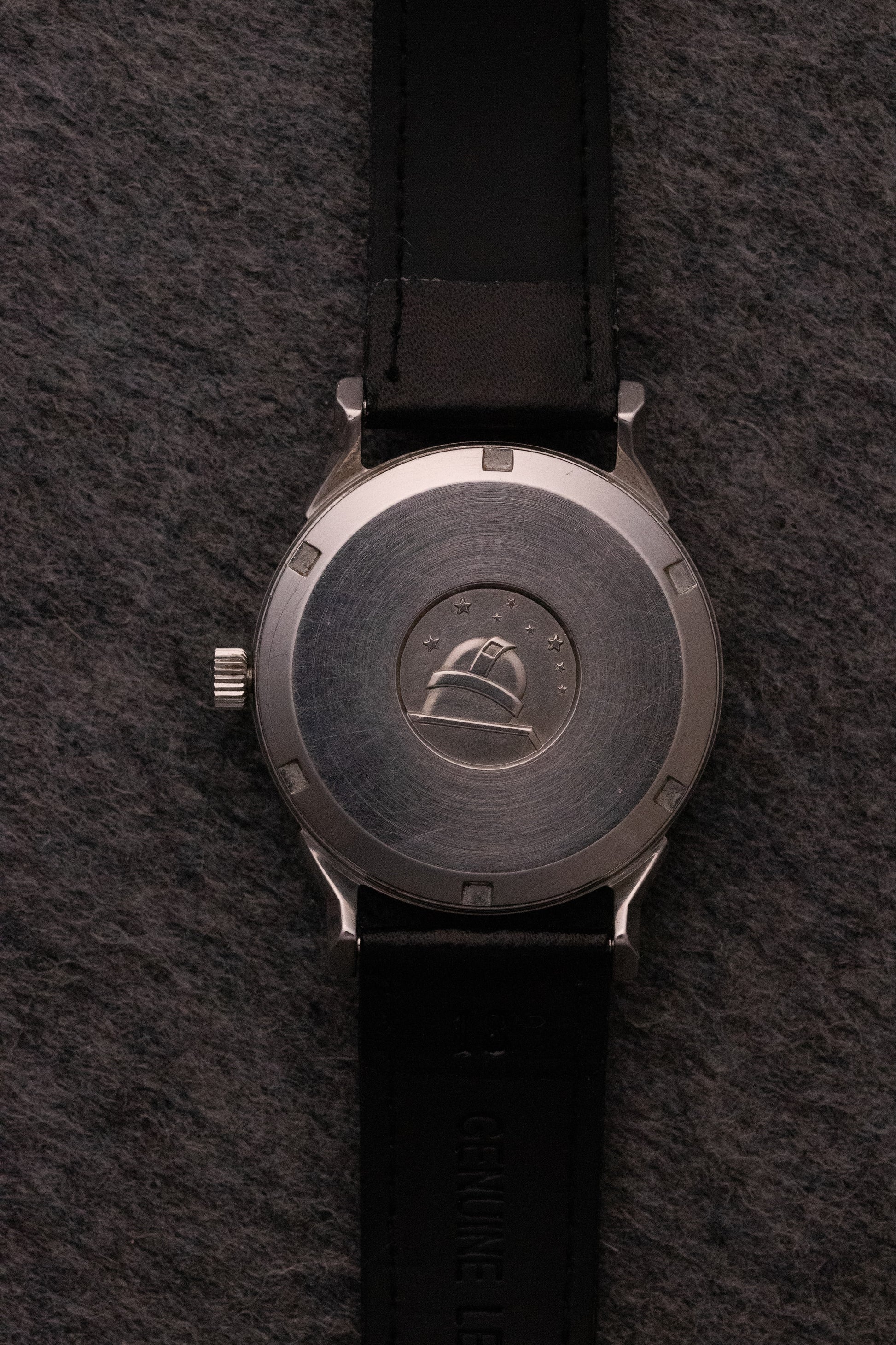 Cadran champagne clair, index appliqués type bâton, date par guichet à 3H, aiguilles flèches acier