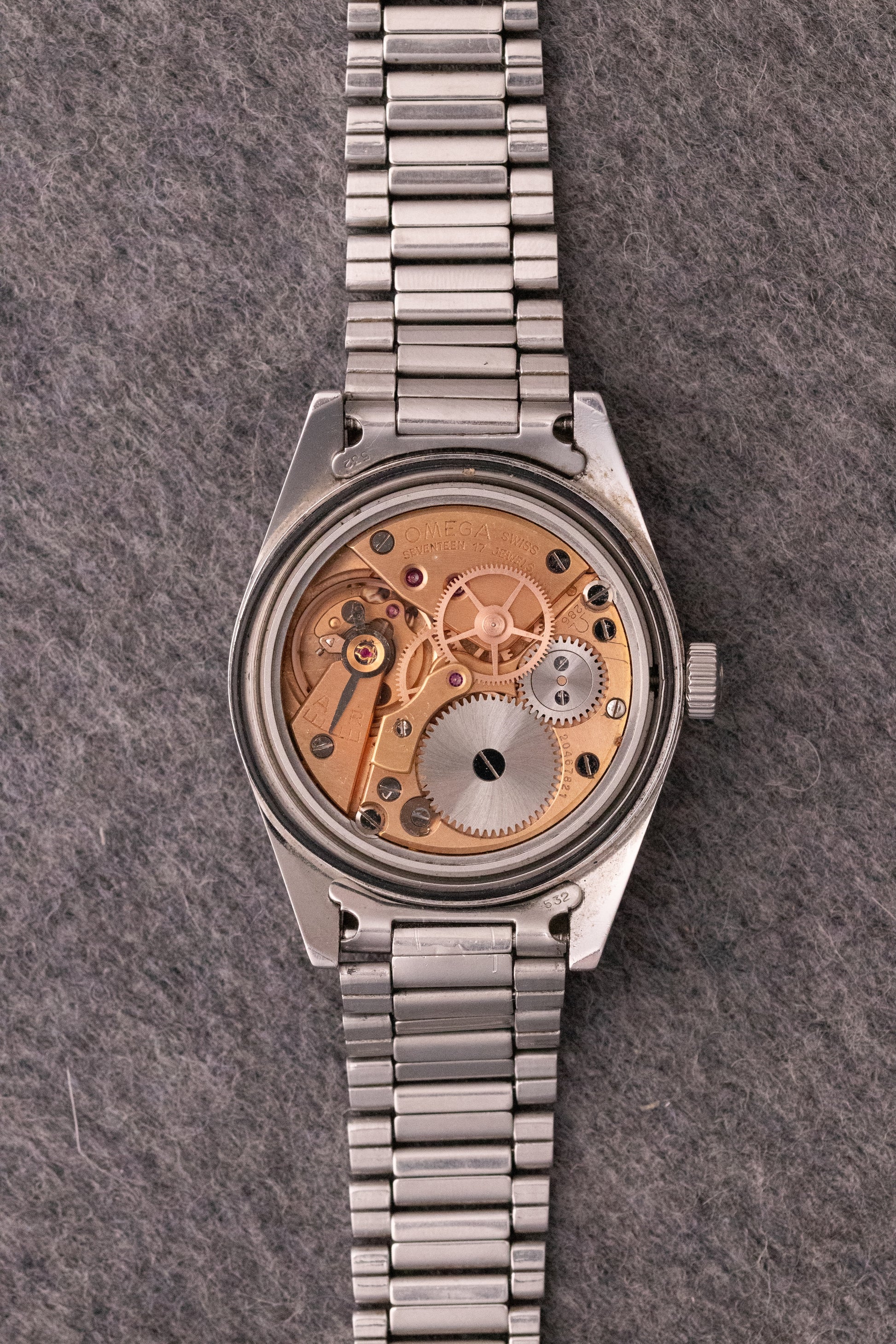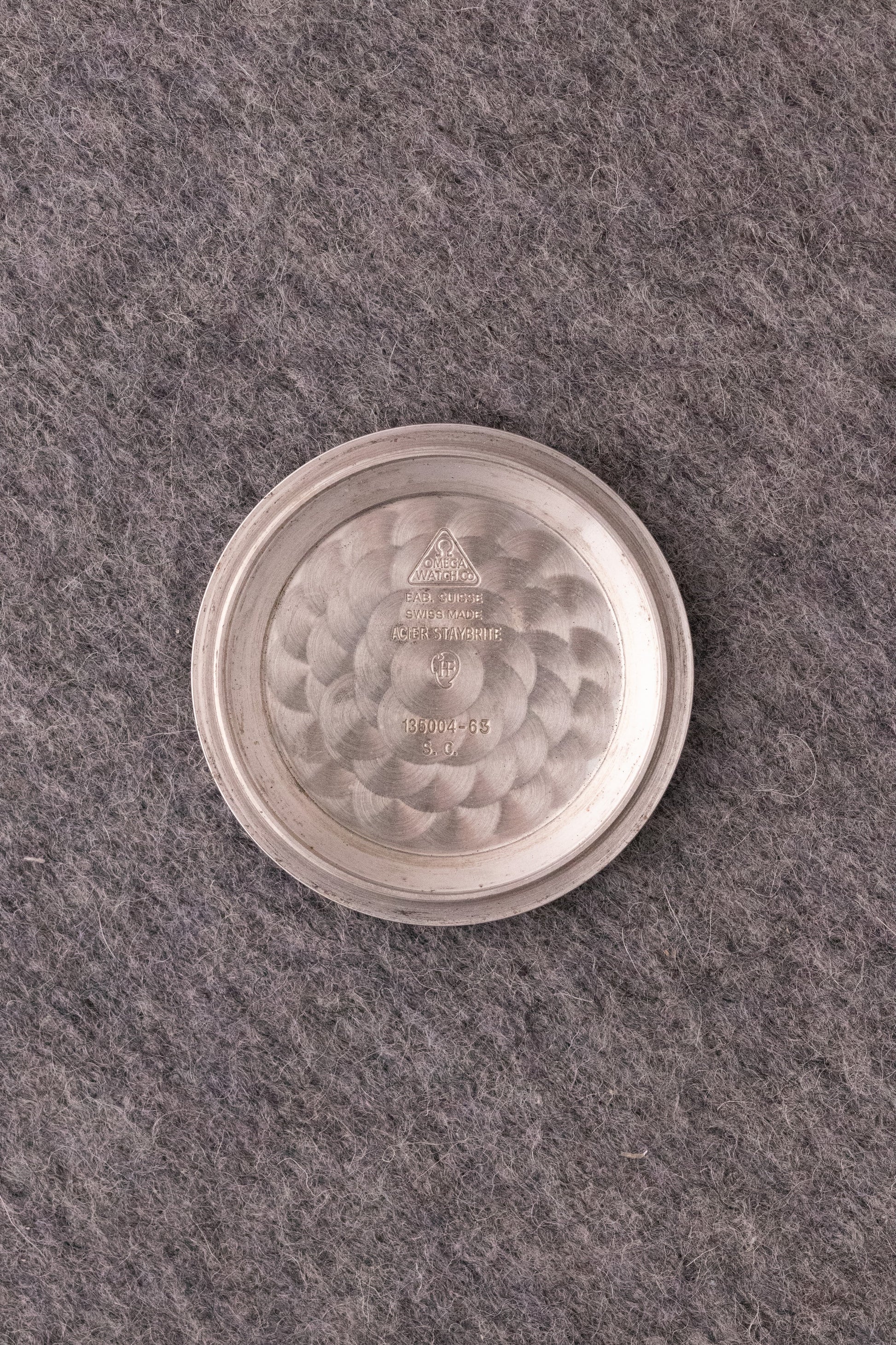 Boitier acier poli 38mm, couronne oméga, fond vissé