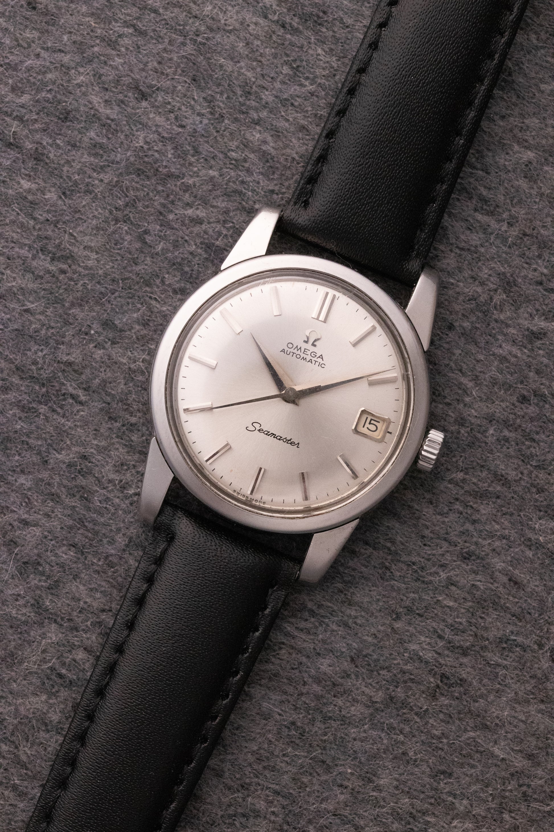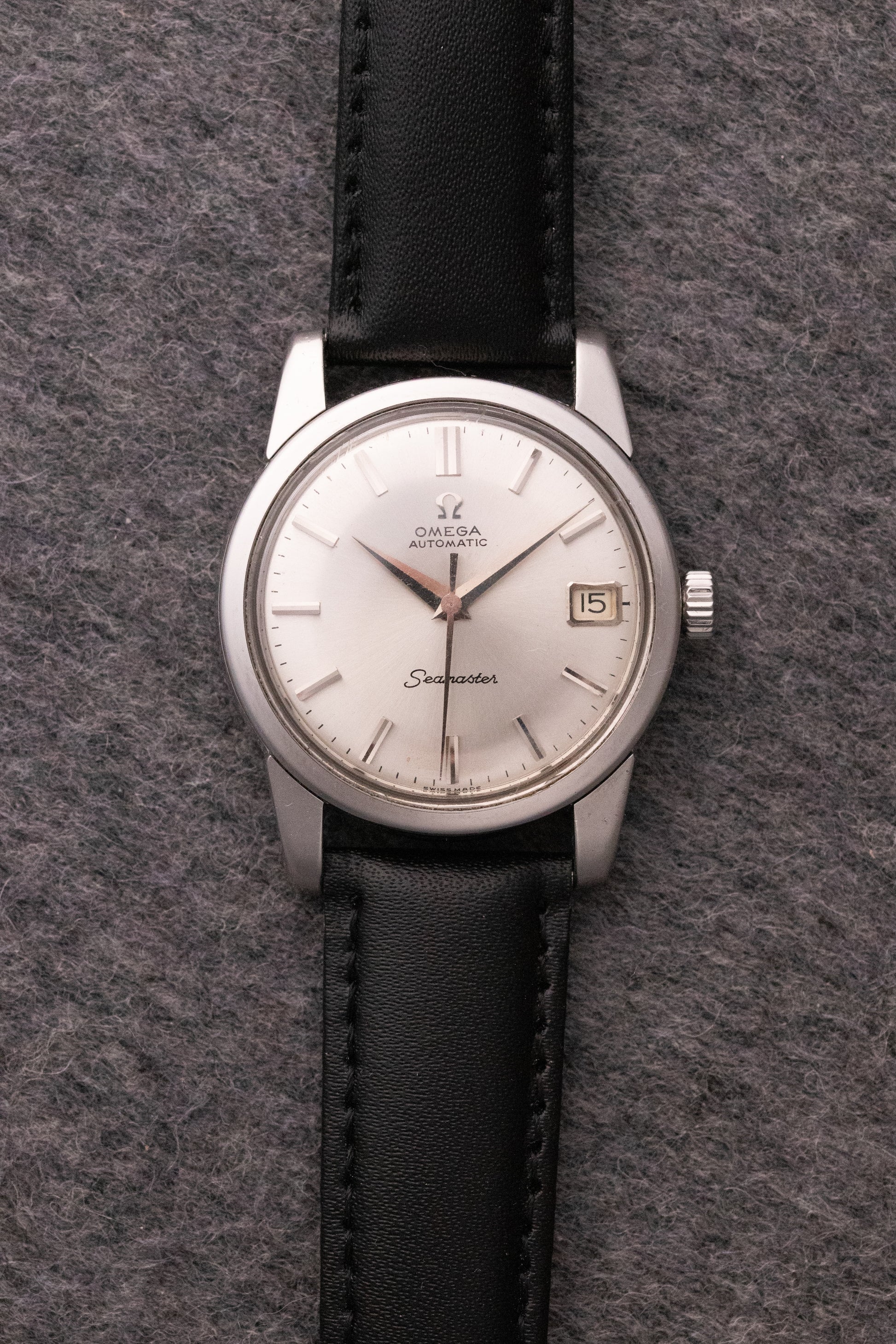 Cadran argenté, index appliqués, aiguilles glaives, date par guichet à 3H