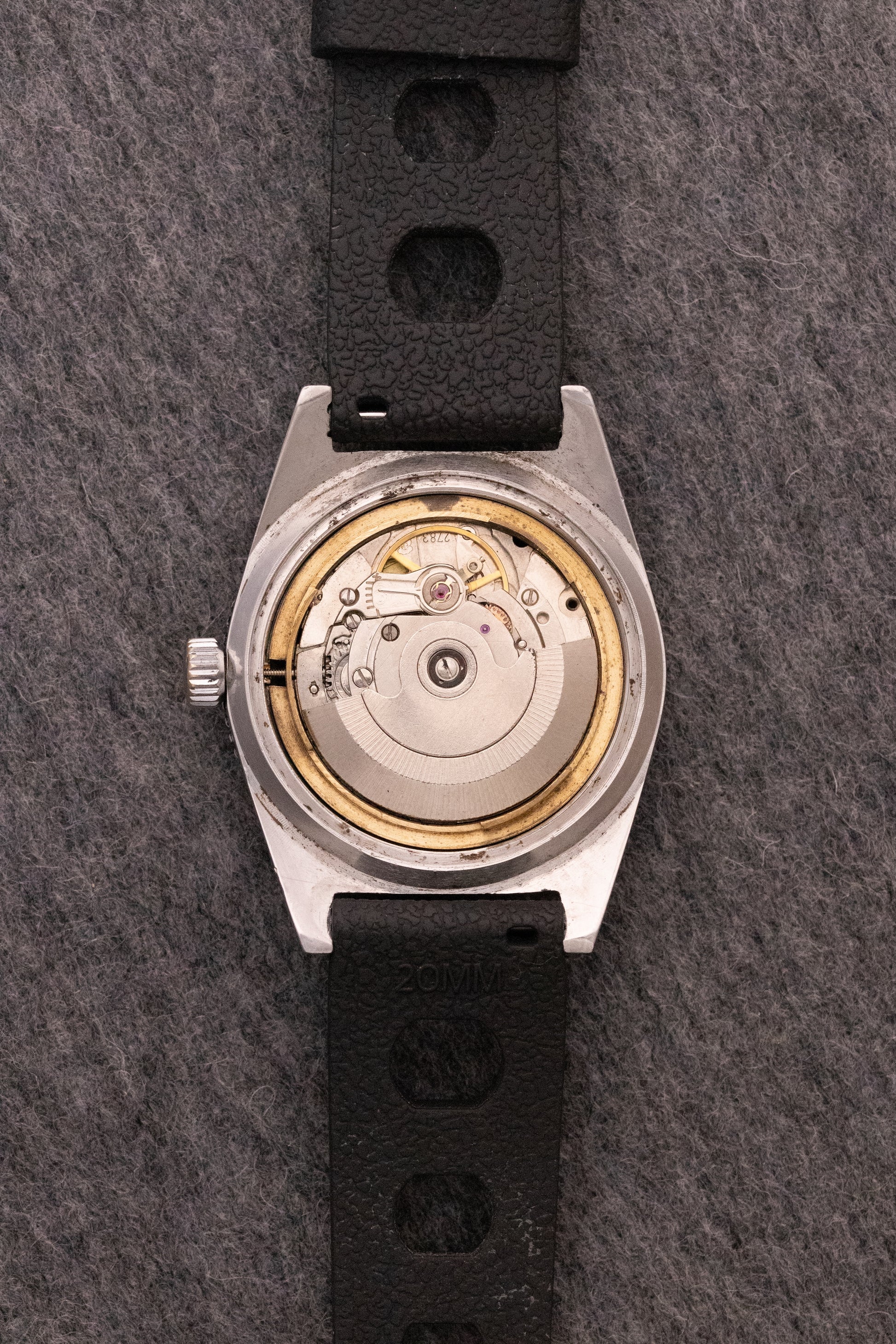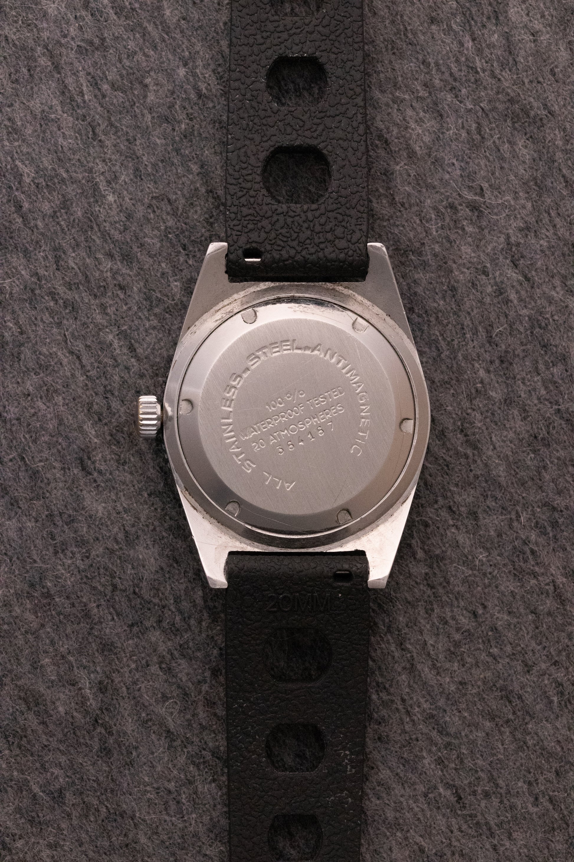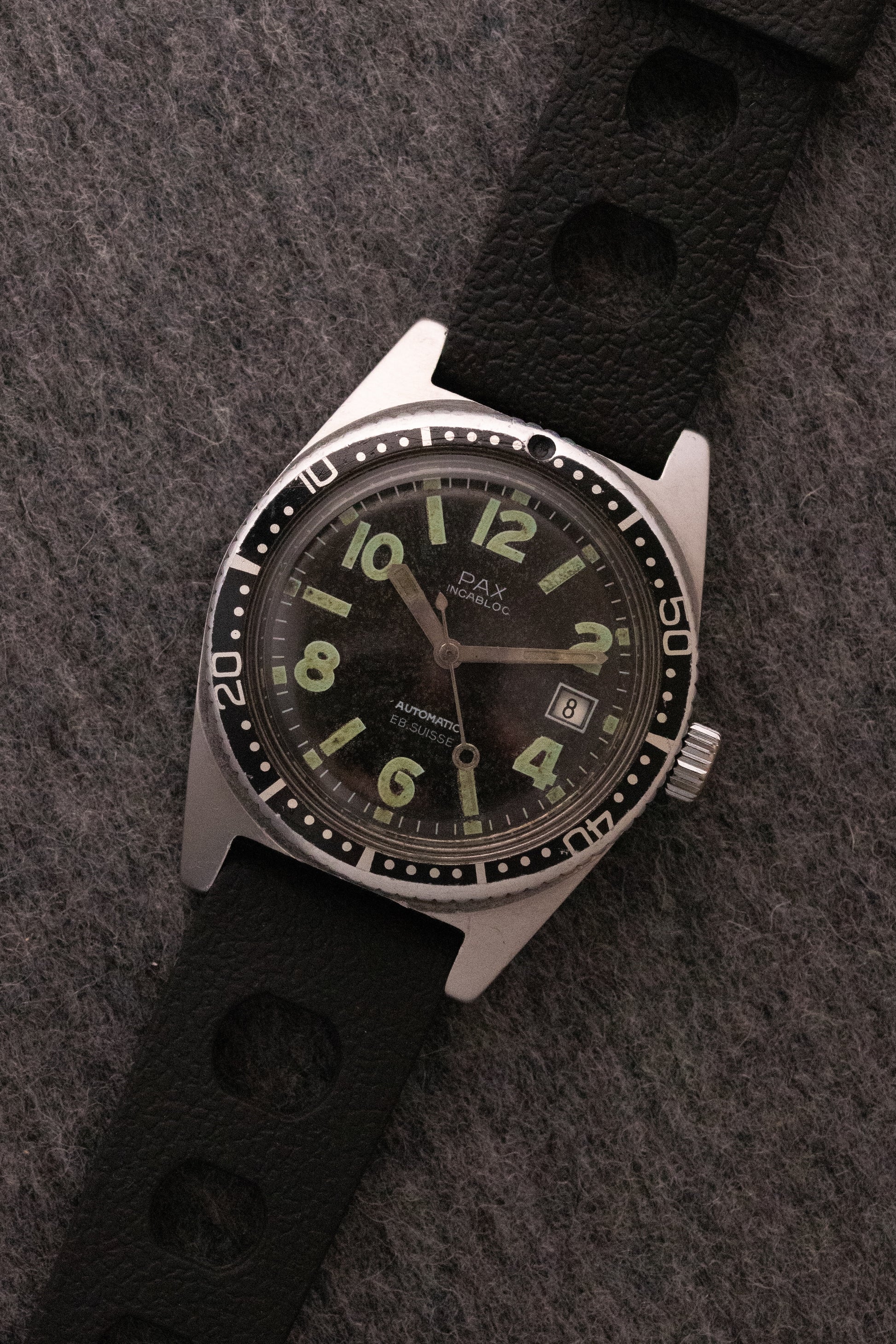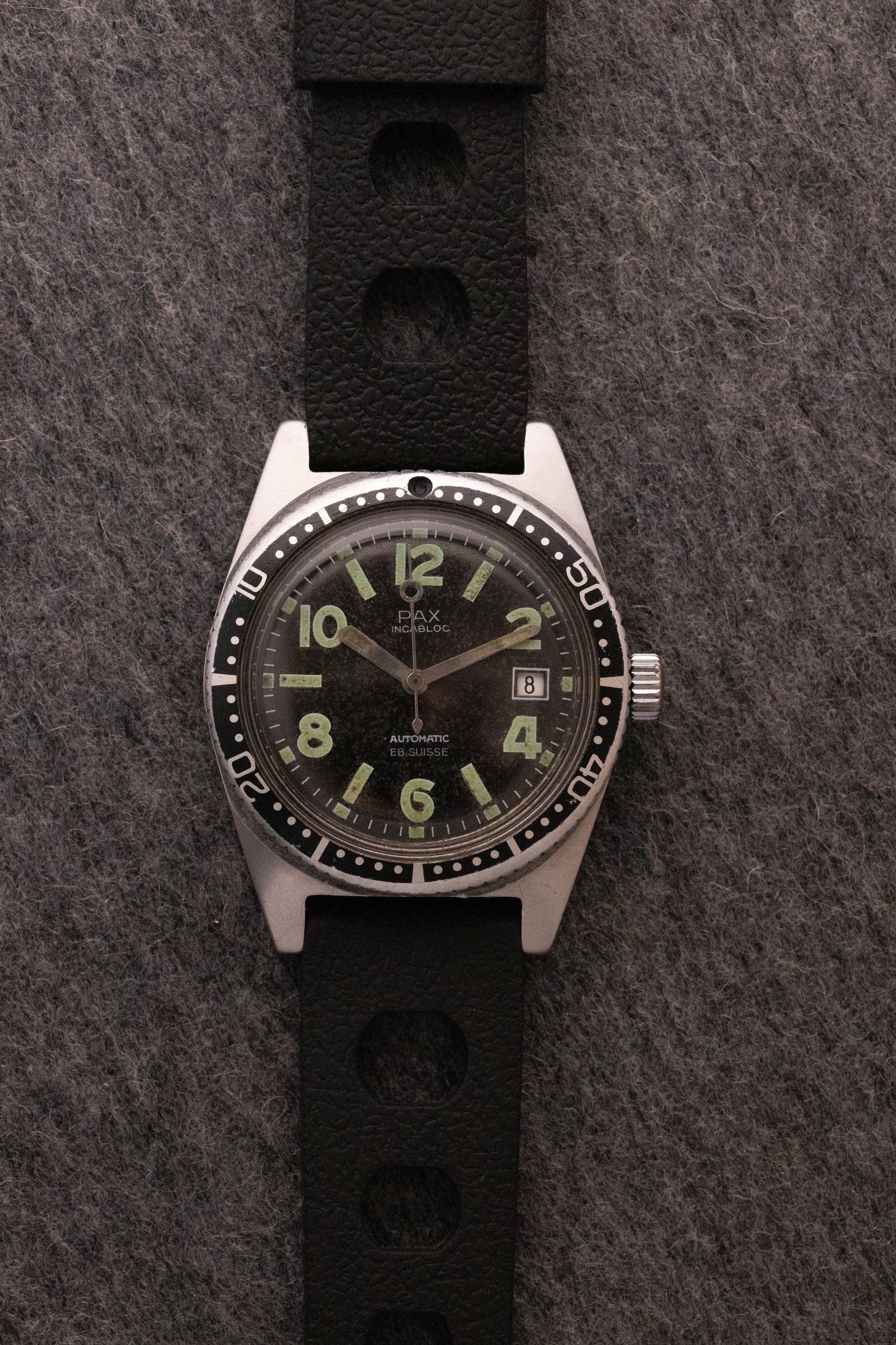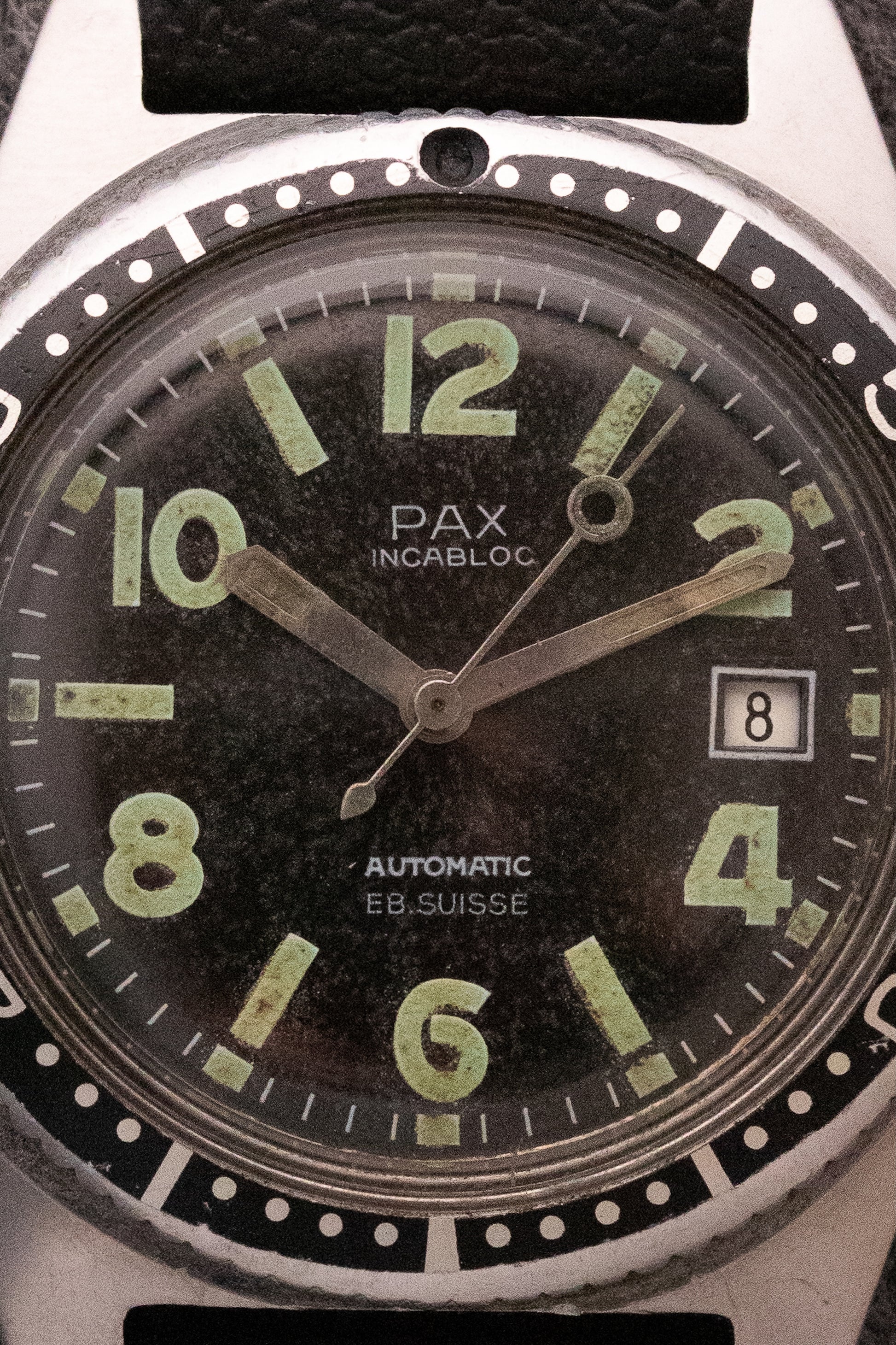Cadran verni noir, index peints tritium, aiguilles lumineuses tritium, date par guichet à 3H