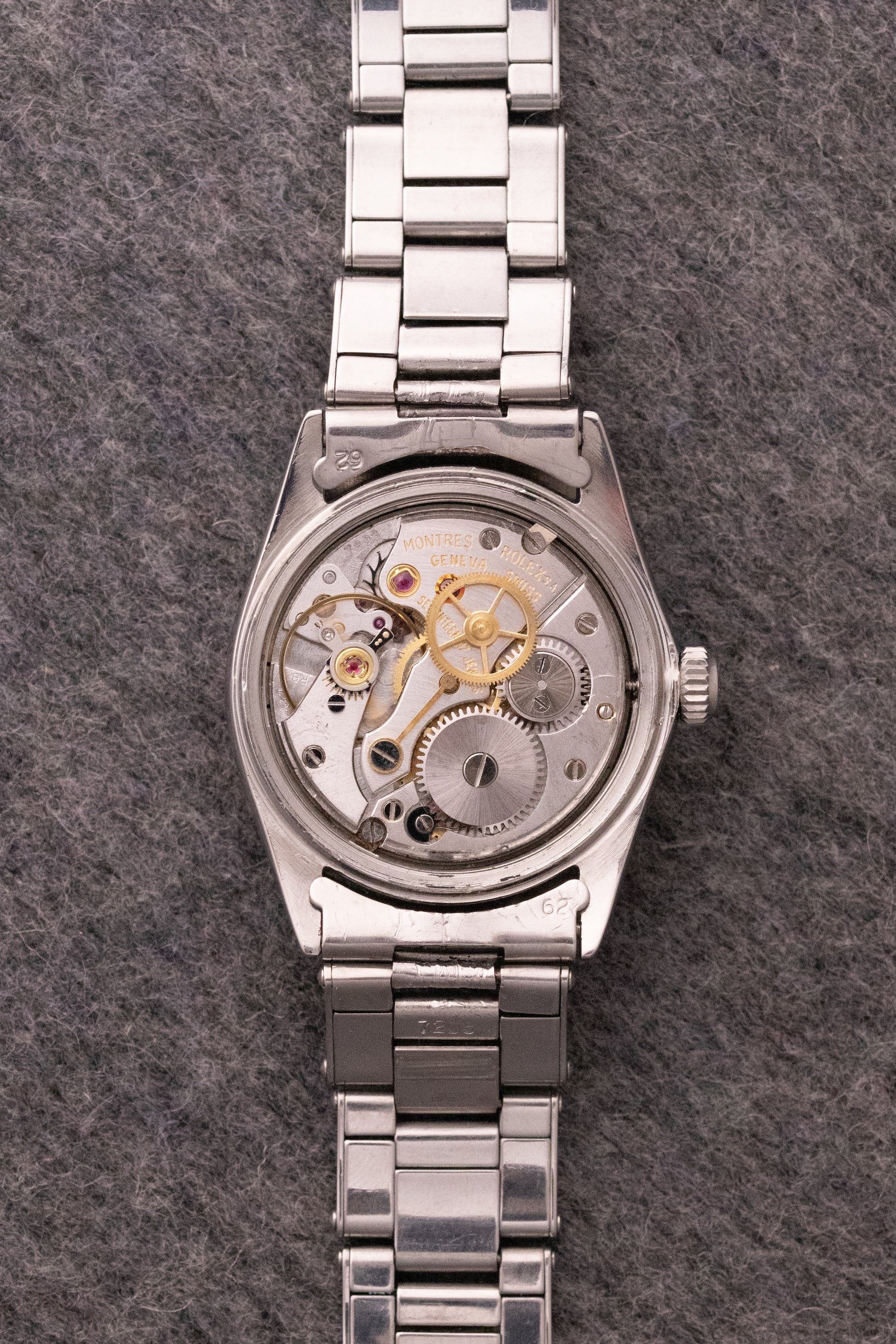 Boitier oyster acier 30mm, fond vissé, bracelet acier riveté