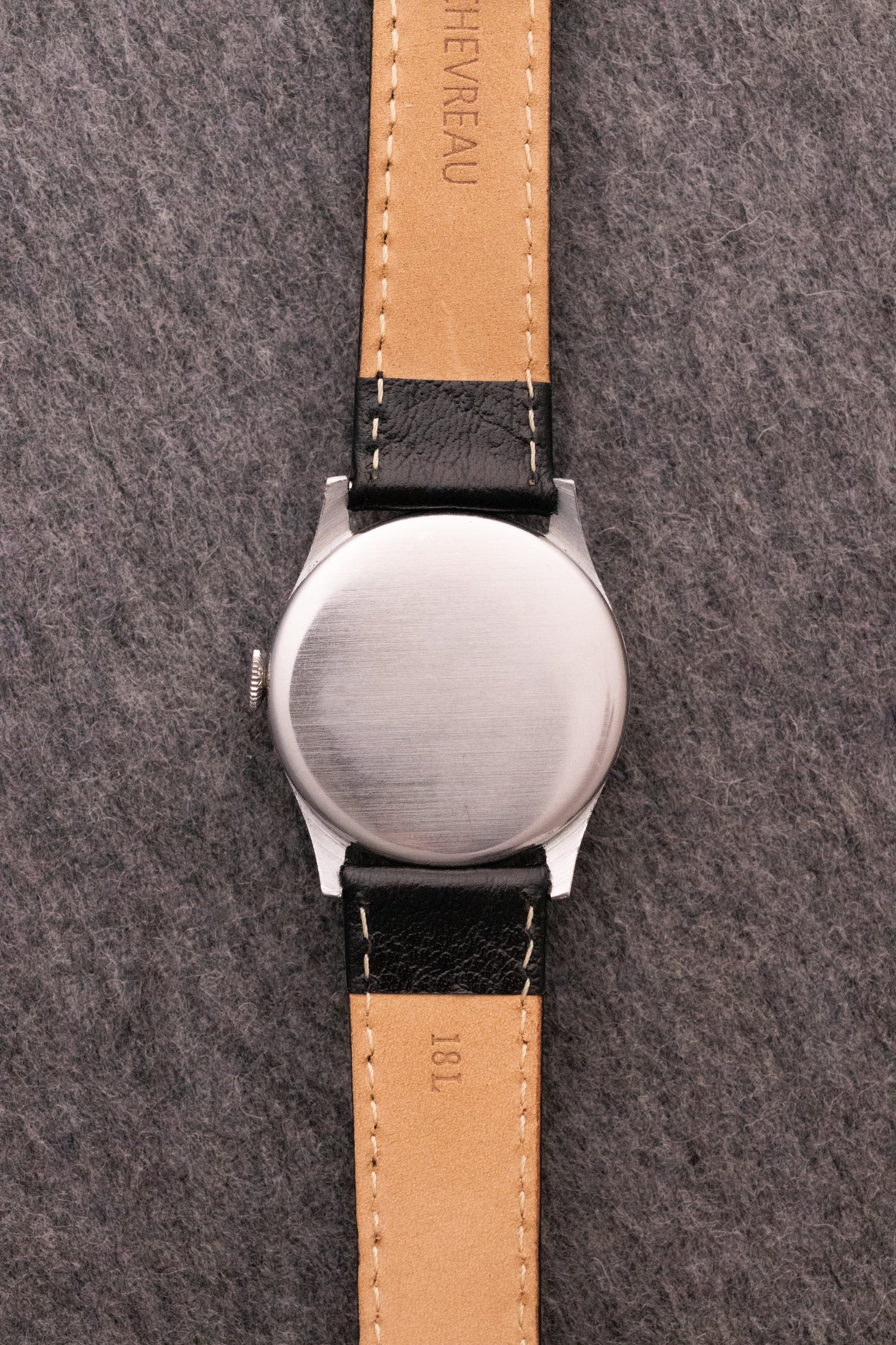 Cadran blanc naturel, index et chemin de fer peints, aiguilles bleuies, petite aiguille à 6H