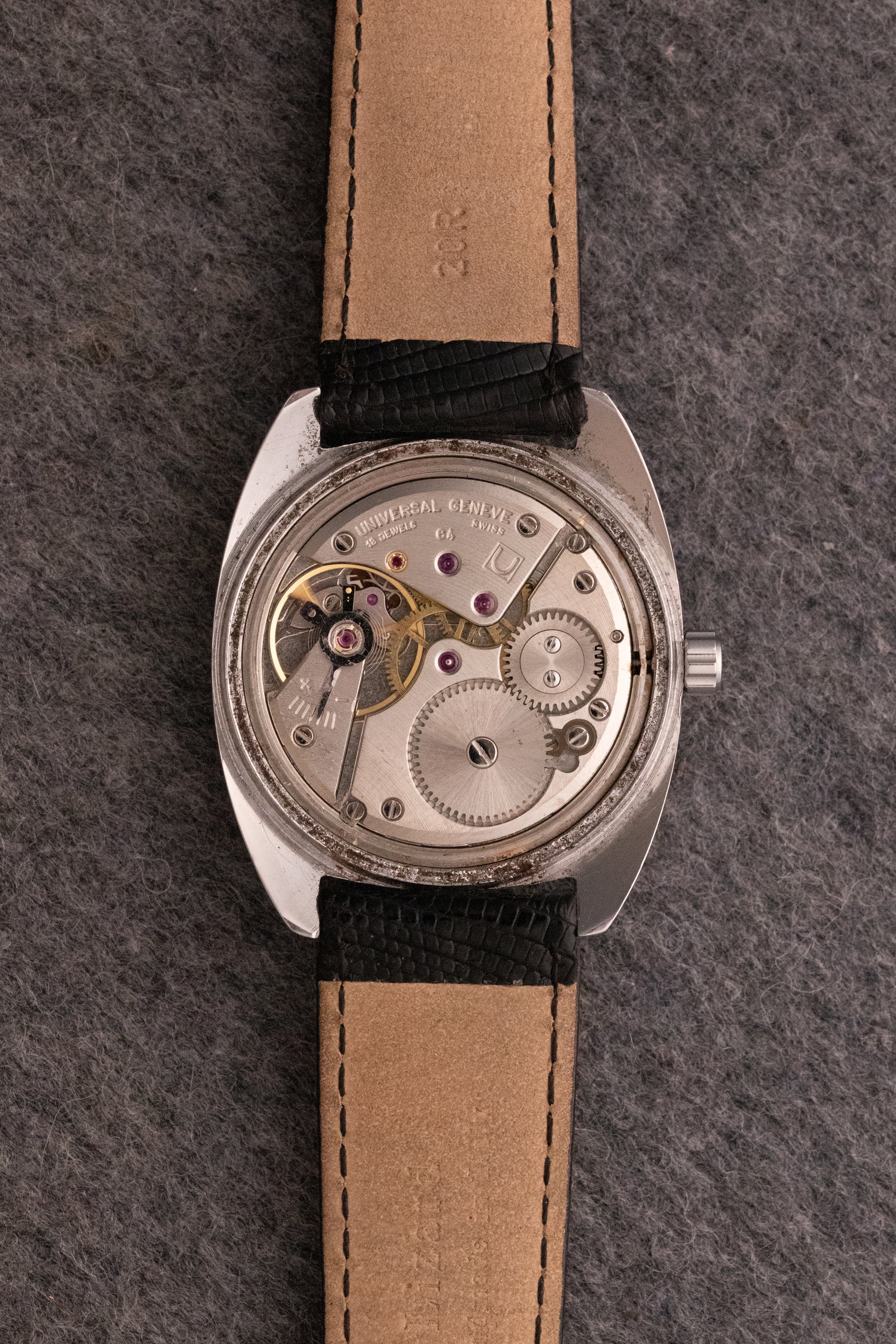 Boitier C shape 36mm en acier poli, fond vissé gravé FS